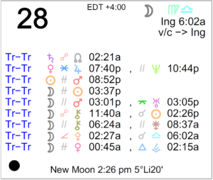 Today's Moon: The Moon is in Libra. The void Moon occurs from 10:05 PM forward (until tomorrow at 5:41 AM when the Moon enters Scorpio). The Moon is waxing and in its New … [Read more...]