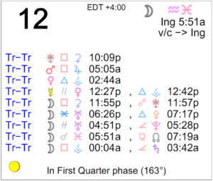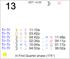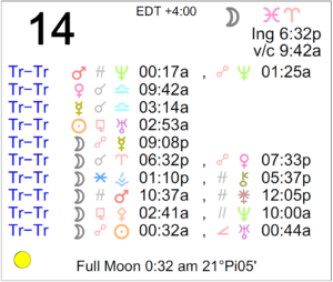 Today's Moon: The Moon is in Aquarius. The void Moon occurs from 1:22 AM forward (until tomorrow when the Moon enters Pisces at 5:51 AM). The Moon is waxing and in its Waxing … [Read more...]