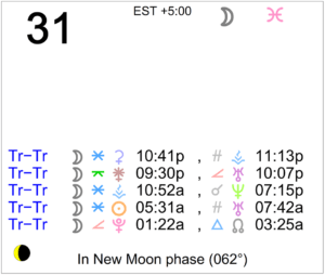 Today's Moon: The Moon is in Aquarius until 10:41 AM, after which the Moon transits Pisces. The void Moon occurs from 5:23 AM to 10:41 AM. The Moon is waxing and in its Waxing … [Read more...]