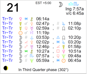 Today's Moon: The Moon is in Virgo until 5:04 AM, after which the Moon transits Libra. The void Moon occurs today from 3:06 AM to 5:04 AM. The Moon is waning and its Last … [Read more...]