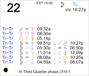 Today's Moon: The Moon is in Scorpio. The void Moon occurs from 10:27 PM forward (until the Moon enters Sagittarius tomorrow at 11:34 AM). The Moon is waning and its Last … [Read more...]