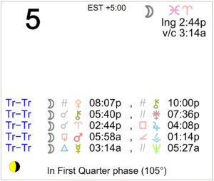 Today's Moon: The Moon is in Aries. The void Moon occurs from 10:01 AM forward (until tomorrow at 2:29 AM when the Moon enters Taurus). The Moon is waxing and in its First … [Read more...]