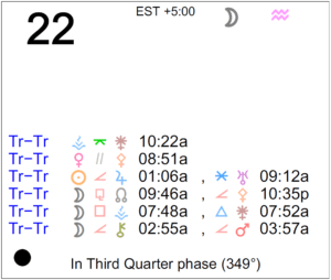 Today's Moon: The Moon is in Aquarius. The Moon is void all day (this happens rather infrequently). The Moon is waning and in its Waning Crescent phase. The Last Quarter Moon occurred on … [Read more...]