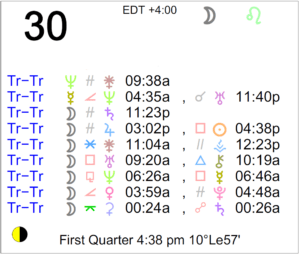 Today's Moon: The Moon is in Leo all day. The void Moon occurs from 12:04 PM forward (until tomorrow when the Moon enters Virgo at 1:35 AM). The Moon is waxing and in its First Quarter … [Read more...]