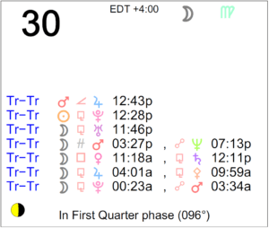Today's Moon: The Moon is in Virgo until 10:37 AM, after which the Moon is in Libra. The void Moon occurs today from 5:16 AM to 10:37 AM. The Moon is waxing and in its First Quarter … [Read more...]
