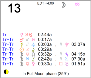 Today's Moon: The Moon is in Aquarius. There is no void Moon today. The Moon is waning and in its Waning Gibbous phase. The Full Moon occurred on the 7th, and the Last Quarter Moon will … [Read more...]