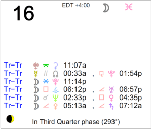 Today's Moon: The Moon is in Pisces. There is no void Moon period today. The Moon is waning and in its Last Quarter phase. The Last Quarter Moon occurred on the 14th, and the New Moon … [Read more...]