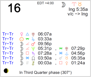 Today's Moon: The Moon is in Aries until 5:35 AM, after which the Moon is in Taurus. The void Moon period continues until 5:35 AM (since yesterday at 8:49 PM). The Moon is waning and in its … [Read more...]