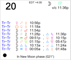 Today's Moon: The Moon is in Virgo. A void Moon occurs from 11:36 PM forward. The Moon is waxing and in its New phase. The New Moon occurred on the 18th in the sign of Leo, and the First … [Read more...]