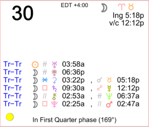 Today's Moon: The Moon is in Aries until 5:18 PM, after which the Moon is in Taurus. A void Moon period occurs from 12:12 PM to 5:18 PM today. The Moon is waxing and in its Waxing Gibbous … [Read more...]