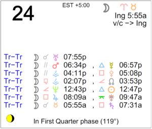 Today's Moon: The Moon is in Aries until 5:55 AM, after which the Moon is in Taurus. The void Moon continues until 5:55 AM (since yesterday at 5:50 PM). The Moon is waxing and in its First … [Read more...]