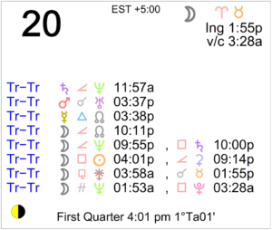 Today's Moon: The Moon is in Aries until 1:55 PM, after which the Moon is in Taurus. The Moon is void from 3:28 AM to 1:55 PM. The Moon is waxing and in its Waxing Crescent phase until 4:01 … [Read more...]