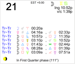 Today's Moon: The Moon is in Cancer all day. There is no void Moon today. The Moon is waxing and in its First Quarter phase. The First Quarter Moon occurred on the 19th, and the Full … [Read more...]
