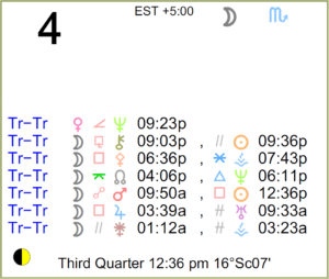 Today's Moon: The Moon is in Scorpio. There is no void Moon today. The Moon is waning and in its Waning Gibbous phase until 12:36 PM, after which the Moon is in its Third Quarter phase. … [Read more...]
