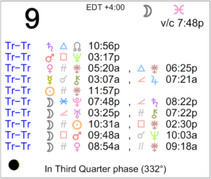 Today's Moon: The Moon is in Pisces until 2:10 AM, after which the Moon is in Aries. The void Moon period ends at 2:10 AM (since yesterday at 7:48 PM). The Moon is waning and in its Waning … [Read more...]