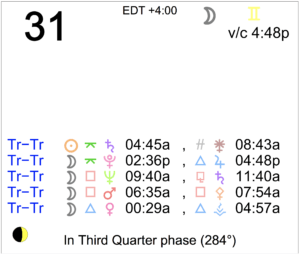 Today's Moon: The Moon is in Gemini. A void Moon period occurs today from 4:48 PM forward (continuing until tomorrow at 1:25 AM. The Moon is in its Last Quarter phase. A Last Quarter … [Read more...]