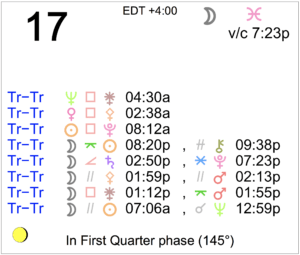 Today's Moon: The Moon is in Aries. There is no void Moon period today. The Moon is waxing and in its Waxing Gibbous phase. The First Quarter Moon occurred on the 12th, and a Full Moon … [Read more...]