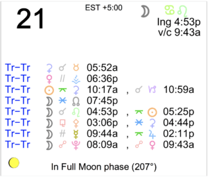 Today's Moon: The Moon is in Cancer until 4:53 PM, after which the Moon is in Leo. A void Moon period occurs today from 9:43 AM to 4:53 PM. The Moon is waning and in its Full phase. The … [Read more...]
