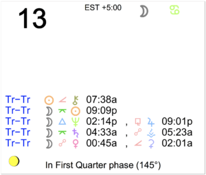 Today's Moon: The Moon is in Cancer. There is no void Moon period today. The Moon is waxing and in its First Quarter phase until 12:33 PM, after which the Moon is in its Waxing Gibbous … [Read more...]