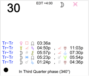 Today's Moon: The Moon is in Pisces. There is no void Moon period today. The Moon is waning and in its Waning Crescent phase. The Last Quarter Moon occurred on the 25th, and a New Moon … [Read more...]