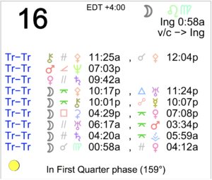 Today's Moon: The Moon is in Virgo. There is no void Moon period today. The Moon is waxing and in its Waxing Gibbous phase. The First Quarter Moon occurred on the 10th, and the Full Moon … [Read more...]