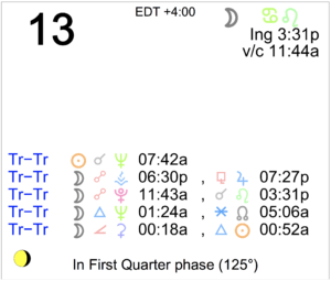Today's Moon: The Moon is in Leo. There is no void Moon period today. The Moon is waxing and in its First Quarter phase until 8:56 AM, after which the Moon is in its Waxing Gibbous phase. … [Read more...]