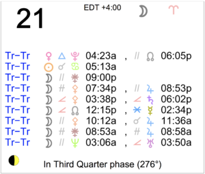 Today's Moon: The Moon is in Aries. There is no void Moon period today. The Moon is waning and in its Last Quarter phase. The Last Quarter Moon occurred last night. Retrogrades: … [Read more...]