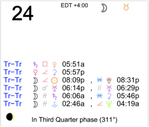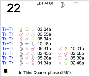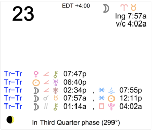 Today's Moon: The Moon is in Aries. There is no void Moon period today. The Moon is waning and in its Last Quarter phase. The Last Quarter Moon occurred on the 20th. Retrogrades: … [Read more...]