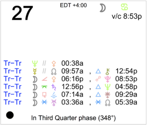Today's Moon: The Moon is in Cancer. A void Moon period begins today at 8:53 PM, and runs until tomorrow at 2:36 AM. The Moon is waning and in its Waning Crescent phase. The Last/Third … [Read more...]