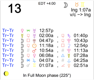 Today's Moon: The Moon is in Gemini. There is no void Moon period today. The Moon is waning and in its Waning Gibbous phase. The Full Moon occurred on the 9th in the sign of … [Read more...]