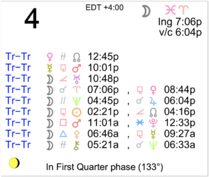 Today's Moon: The Moon is in Pisces until 7:06 PM, after which the Moon is in Aries. A void Moon period occurs from 6:04 PM to 7:06 PM today. The Moon is waxing and in its First Quarter … [Read more...]