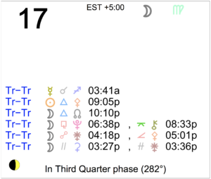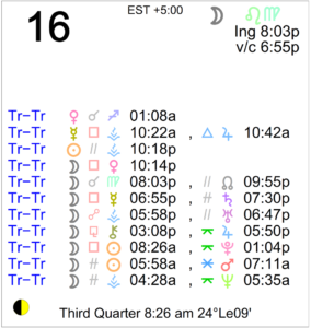 Today's Moon: The Moon is in Virgo. There is no void Moon period today. The Moon is waning and in its Last Quarter phase. The Last Quarter Moon occurred on the 16th. Retrogrades: … [Read more...]