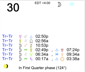 Today's Moon: The Moon is in Scorpio. There is no void Moon period today. The Moon is in its Waxing Gibbous phase. The First Quarter Moon occurred on the 27th, and the Full Moon will … [Read more...]