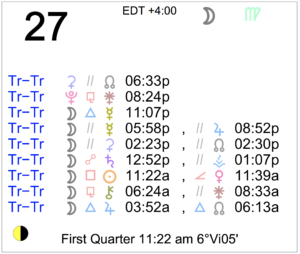 | Uranus | 00° Gemini 11' 25" R |