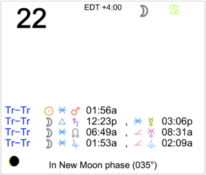 Today's Moon: The Moon is in Cancer. There is no void Moon period today. The Moon is waxing and in its New phase. The New Moon occurred on the 19th in the sign of … [Read more...]