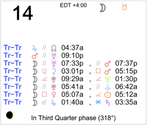 Today's Moon: The Moon is in Aries. There is no void Moon period today. The Moon is waning and in its Last Quarter phase. The Last Quarter Moon occurred on the 10th. Retrogrades: … [Read more...]