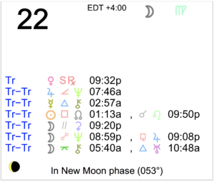 Today's Moon: The Moon is in Virgo. There is no void Moon period today. The Moon is in its Waxing Crescent phase. The New Moon occurred on the 17th in Cancer. Retrogrades: Venus … [Read more...]