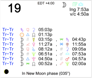 Today's Moon: The Moon is in Virgo until 7:53 PM, after which the Moon is in Libra. A void Moon occurs from 4:50 AM to 7:53 AM today. The Moon is waxing and in its New phase. The New … [Read more...]
