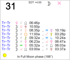 Today's Moon: The Moon is in Pisces. There is no void Moon period today. The Moon is waning and in its Full phase. The Full Moon occurred yesterday in Pisces. Retrogrades: … [Read more...]