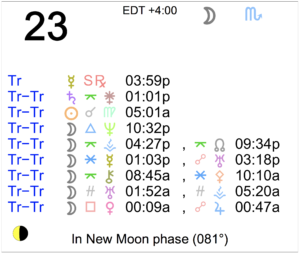 Today's Moon: The Moon is in Scorpio. There is no void Moon period today. The Moon is waxing and in its Waxing Crescent phase. The New Moon occurred on the 16th in the sign of Leo, and … [Read more...]