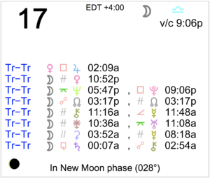 Today's Moon: The Moon is in Libra. A void Moon period occurs today from 9:06 PM forward. The Moon is waxing and in its New phase. The New Moon occurred on the 14th in … [Read more...]