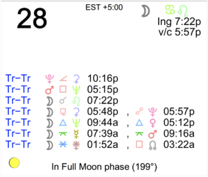 Today's Moon: The Moon is in Leo. There is no void Moon period today. The Moon is waning and in its Full phase until 6:50 PM, after which the Moon is in its Waning Gibbous phase. The … [Read more...]