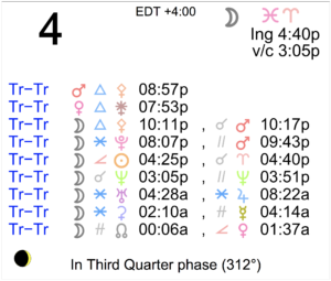Today's Moon: The Moon is in Pisces until 4:40 PM, from which time the Moon is in Aries. A void Moon period occurs from 3:05 PM to 4:40 PM today. The Moon is waning and in its Third Quarter … [Read more...]