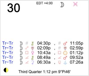 Today's Moon: The Moon is in Pisces. There is no void Moon period today. The Moon is waning and in its Waning Gibbous phase until 1:12 PM, after which the Moon is in its Last Quarter … [Read more...]