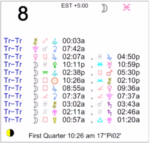 Today's Moon: The Moon is in Pisces until 8:37 AM, from which time the Moon is in Aries. A void Moon period occurs from 3:44 AM to 8:37 AM today. The Moon is waxing and in its First Quarter … [Read more...]