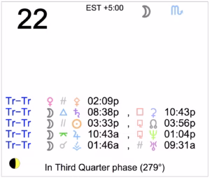 Today's Moon: The Moon is in Scorpio. There is no void Moon period today. The Moon is waning and in its Last Quarter phase. The Third Quarter Moon occurred yesterday. Retrogrades: … [Read more...]