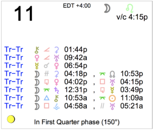 Today's Moon: The Moon is in Leo until 3:55 AM, from which time the Moon is in Virgo. The void Moon period continues today until 3:55 PM (since yesterday at 4:15 PM). The Moon is waxing and … [Read more...]