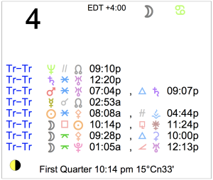 Today's Moon: The Moon is in Cancer. There is no void Moon today. The Moon is waxing and in its Waxing Crescent phase until 10:14 PM, from which time the Moon is in its First Quarter … [Read more...]