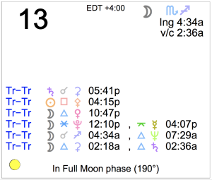 Today's Moon: The Moon is in Scorpio until 4:34 AM when it enters Sagittarius. A void Moon occurs today from 2:36 AM until 4:34 AM. The Moon is waning and in its Full phase. The Full … [Read more...]
