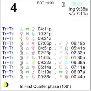 Today's Moon: The Moon is in Virgo until 9:38 AM, when the Moon enters Libra. A void Moon period occurs today from 7:11 AM to 9:38 AM. The Moon is waxing and in its First Quarter phase. … [Read more...]